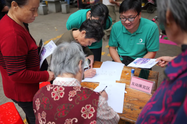 “迷失的時(shí)鐘”互動(dòng)展覽區(qū):通過直面觀看失智癥患者的鐘表圖,自己切身體驗(yàn)畫鐘的感覺,讓居民切身感受患者在認(rèn)知障礙下的困境與無助,極大增強(qiáng)了社區(qū)成員的理解與共情能力。