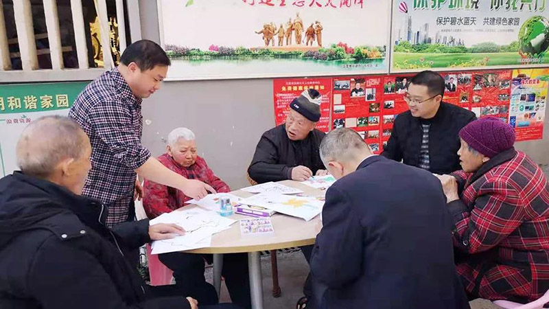 在紗廠街社區(qū),每周二,倆寶貝的工作人員都會(huì)為這里入住的老人舉辦繪畫活動(dòng)。