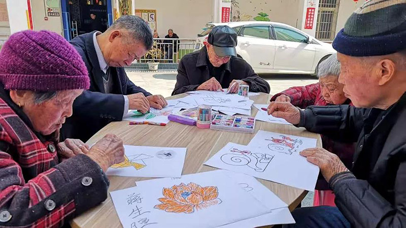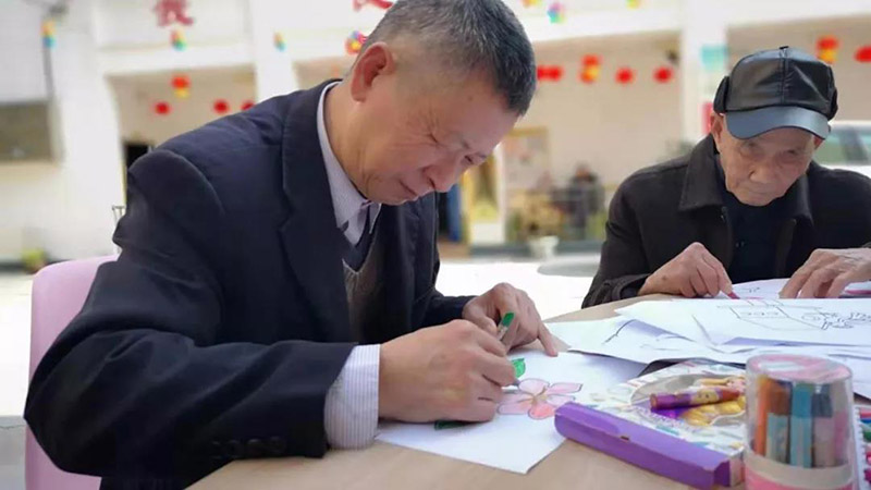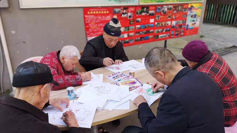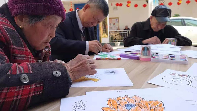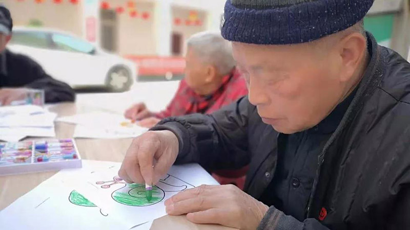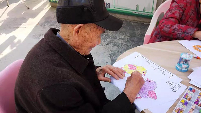 老人們都認(rèn)真的對(duì)自己手中的畫進(jìn)行填涂,現(xiàn)場(chǎng)氣氛十分的和諧與溫馨。