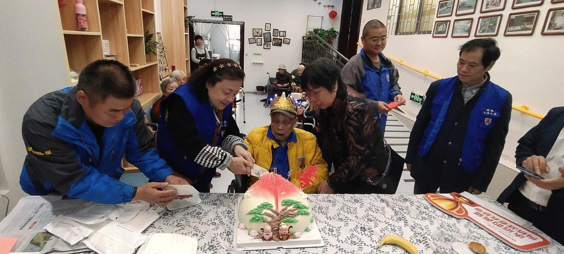 與此同時,湖南老兵之家的志愿者們提著大壽桃狀的蛋糕,來到了爺爺房間!一起為爺爺唱生日歌、吃蛋糕,其樂融融,每個人的臉上都露出了開心的笑容,一個接一個和我們的壽星百歲爺爺合照沾喜氣!正是因為有像李紹杰爺爺這樣的老兵為我們幸福平安的生活做出了巨大貢獻,我們才能生活得如此安定。我們不會也不該忘記他們曾經(jīng)遭受過的苦難,我們希望他們能在銀海倆寶貝幸福、安詳?shù)亩冗^晚年!祝爺爺健康長壽!