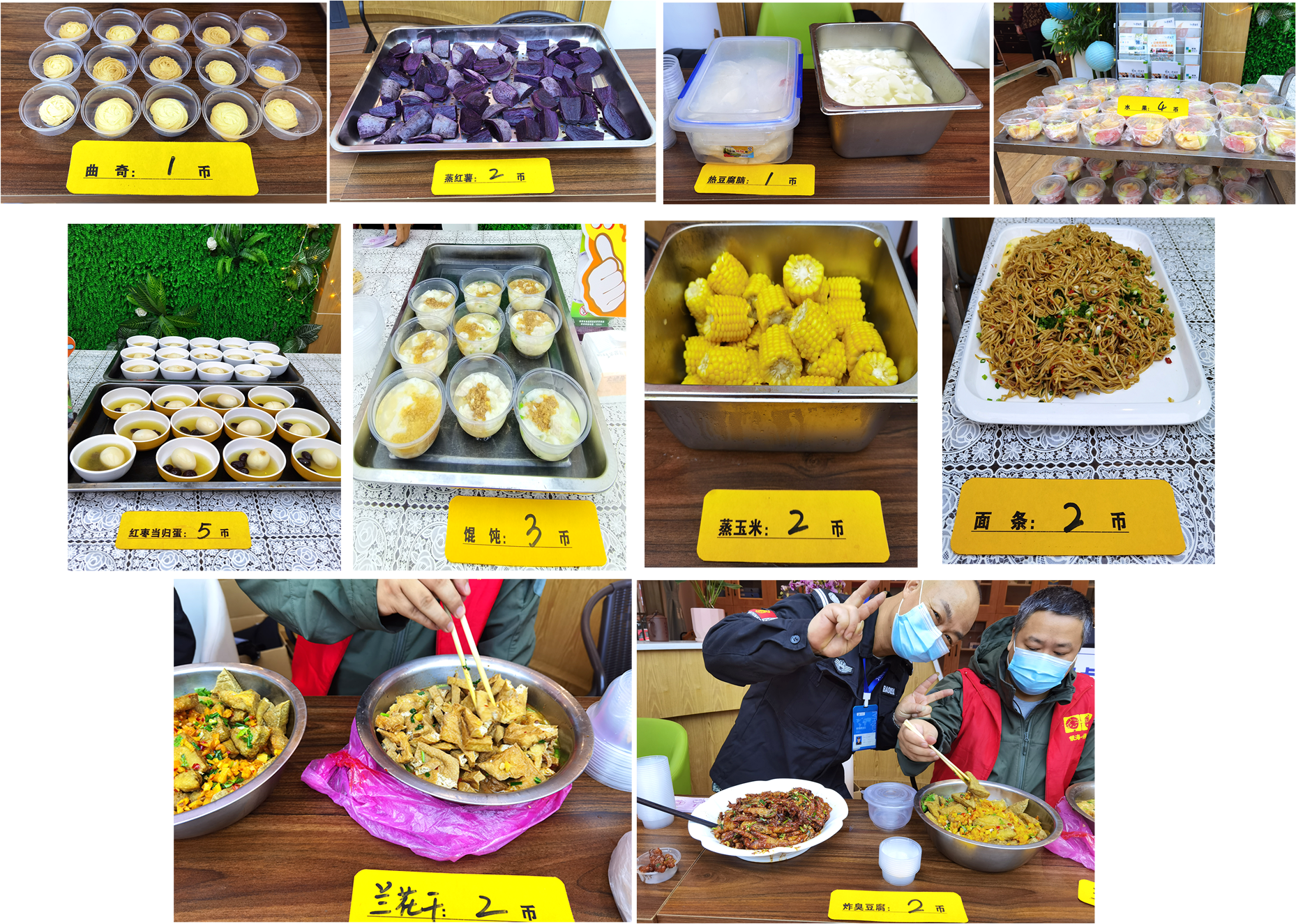 院內(nèi)長者每人發(fā)放20幸福幣作為基礎(chǔ)幣使用,購買攤位上的美食。