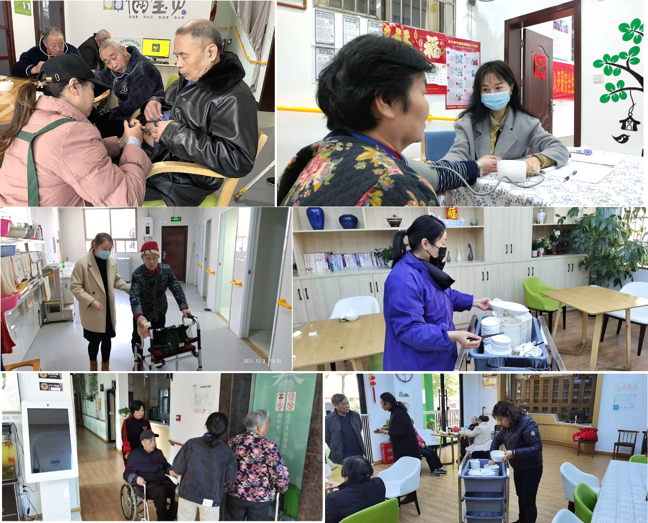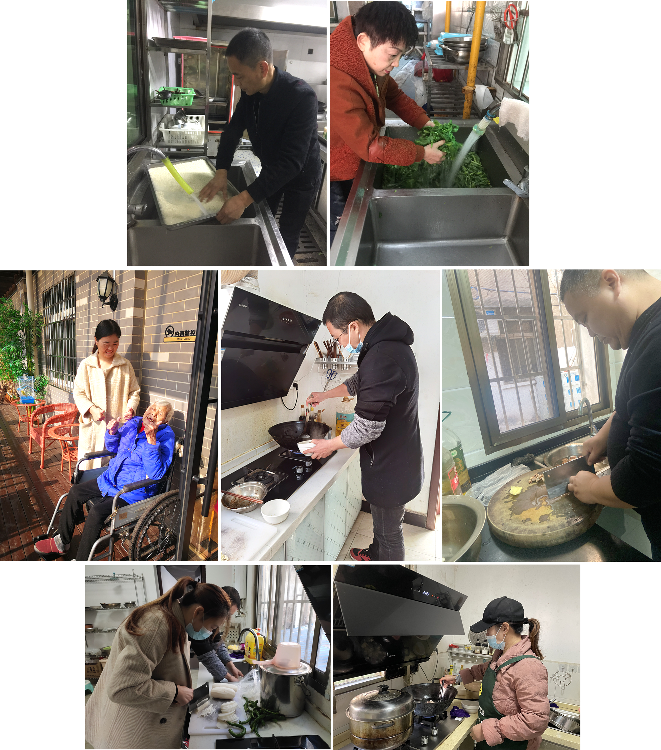對接清楚后,每位同事都有條不紊的開啟了工作...廚房幫廚...搞衛(wèi)生...帶爺爺奶奶們出去曬太陽...更有同事大顯身手,為爺爺奶奶們制作可口的養(yǎng)生餐。(雖然可能沒有護(hù)理員姐姐們做的美味,但是滿滿的誠意在)