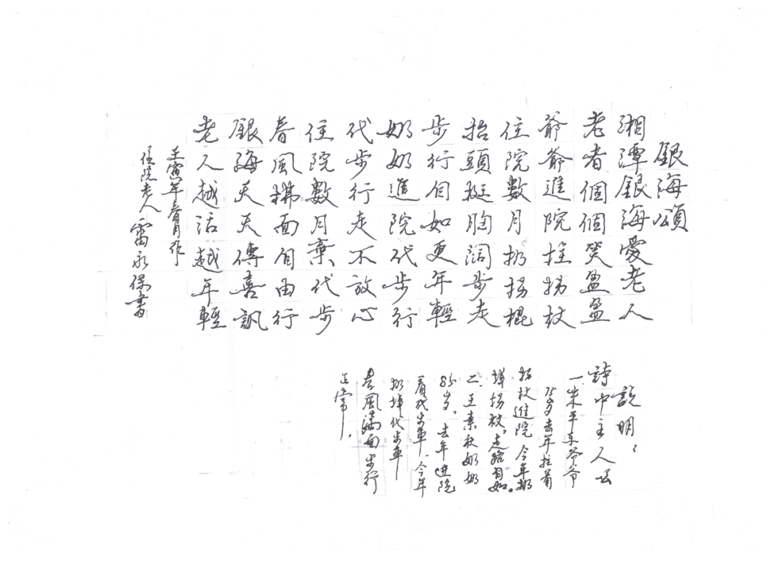 以下作品為銀海倆寶貝入住老人雷永保爺爺所作: