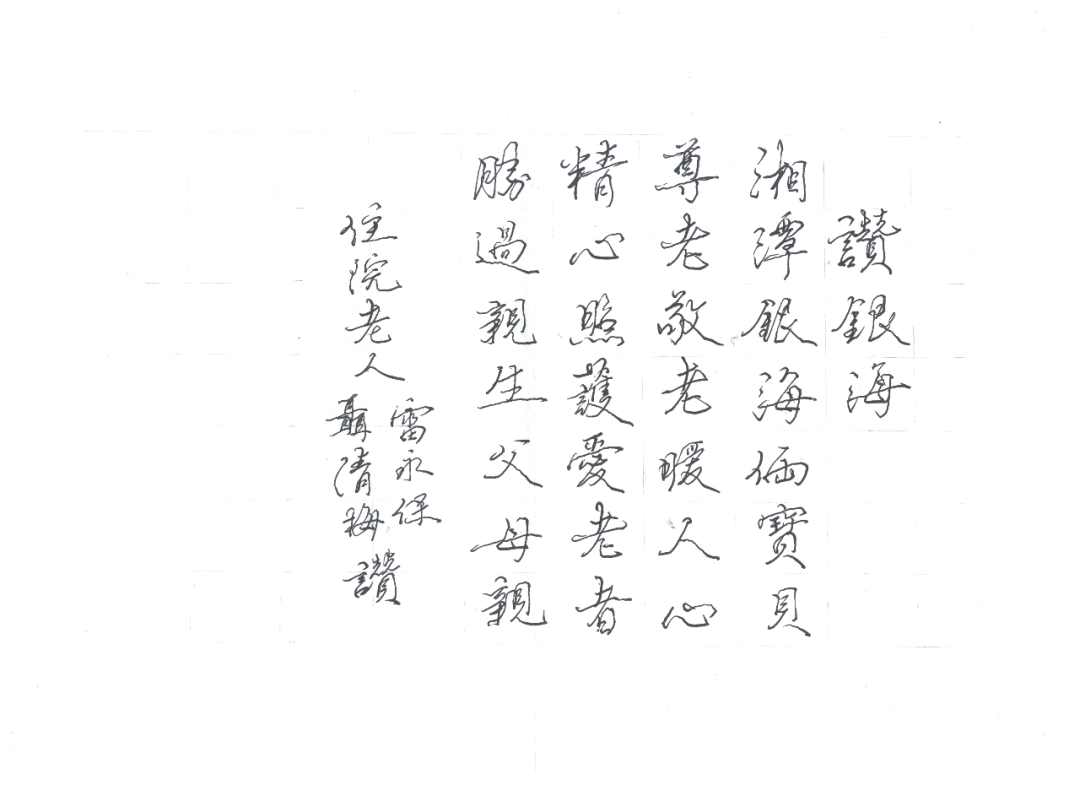 流露出雷爺爺對銀海倆寶貝養(yǎng)老服務(wù)的認(rèn)可和肯定。