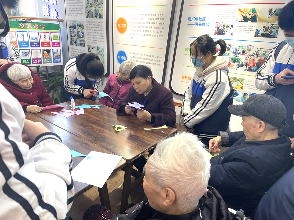 當(dāng)爺爺奶奶們看到一張張青春充滿活力的臉龐圍繞在他們周圍,心中也不由得輕快了許多。有同學(xué)自告奮勇,提出為爺爺奶奶表演節(jié)目,于是一幕幕精彩的畫面,輪番上演。熱情洋溢的拉丁舞,朝氣蓬勃的紅歌合唱,青春的力量無(wú)不感染著爺爺奶奶們,那一刻他們的激情也被點(diǎn)燃了,他們忘記了吃飯的時(shí)間,甚至不覺(jué)得身體疲憊,最后在依依不舍的掌聲中歡送走了這群活力滿滿的孩子們。