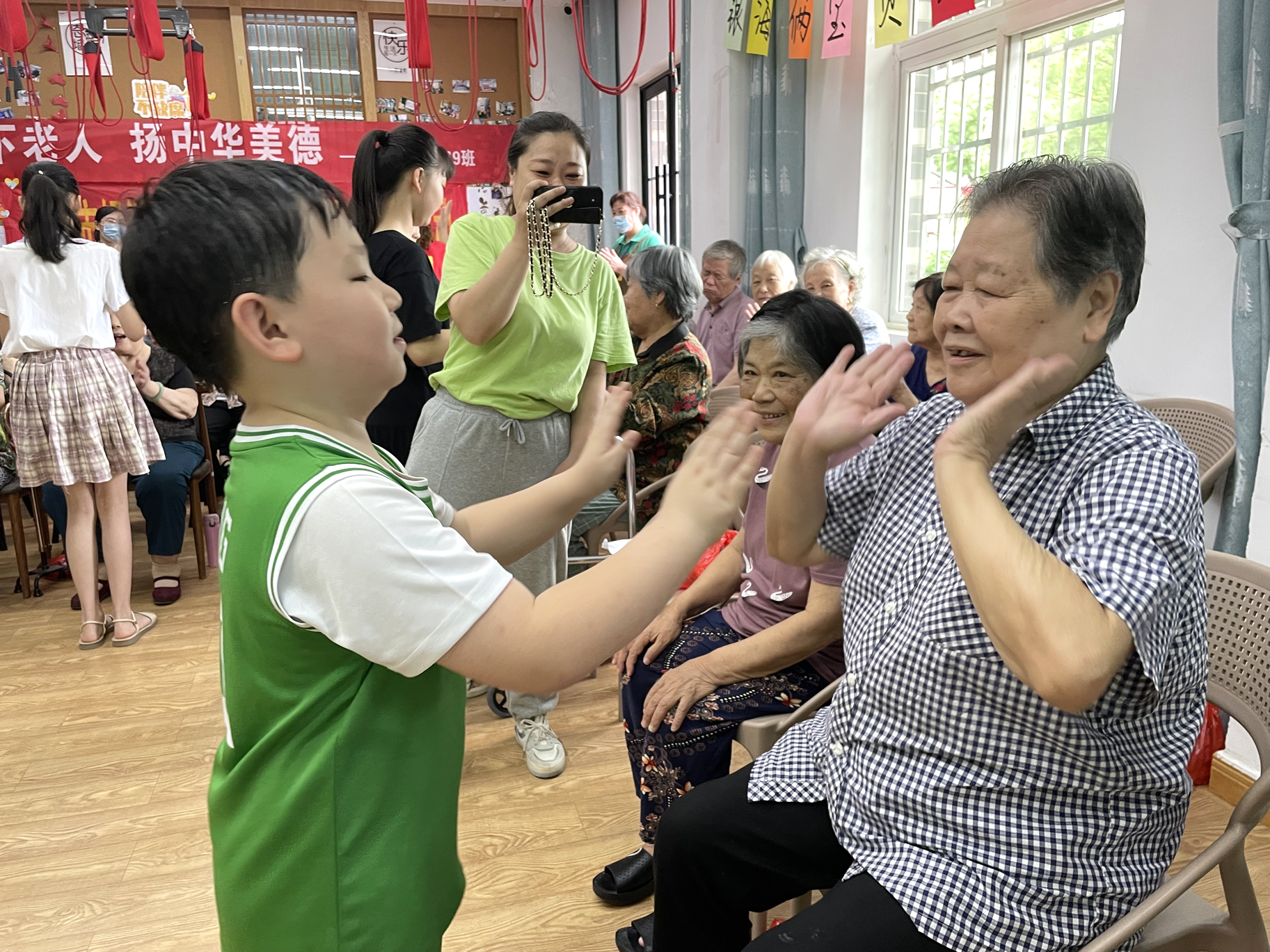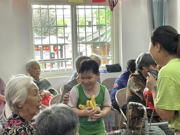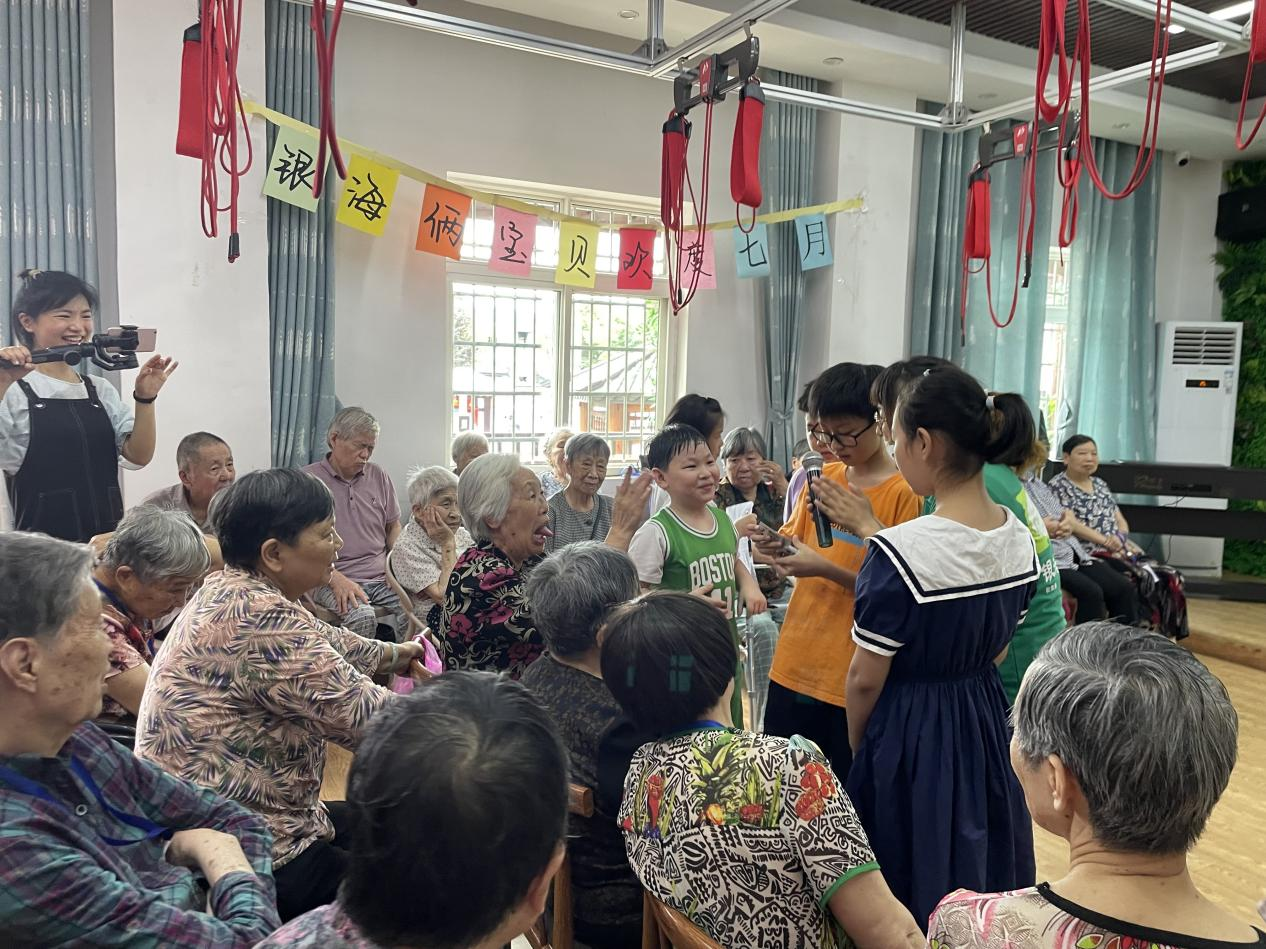 昨日,銀海倆寶貝又如期迎來了一批小小志愿者,他們的童顏樂趣給院內(nèi)的爺爺奶奶們帶來了歡聲笑語。