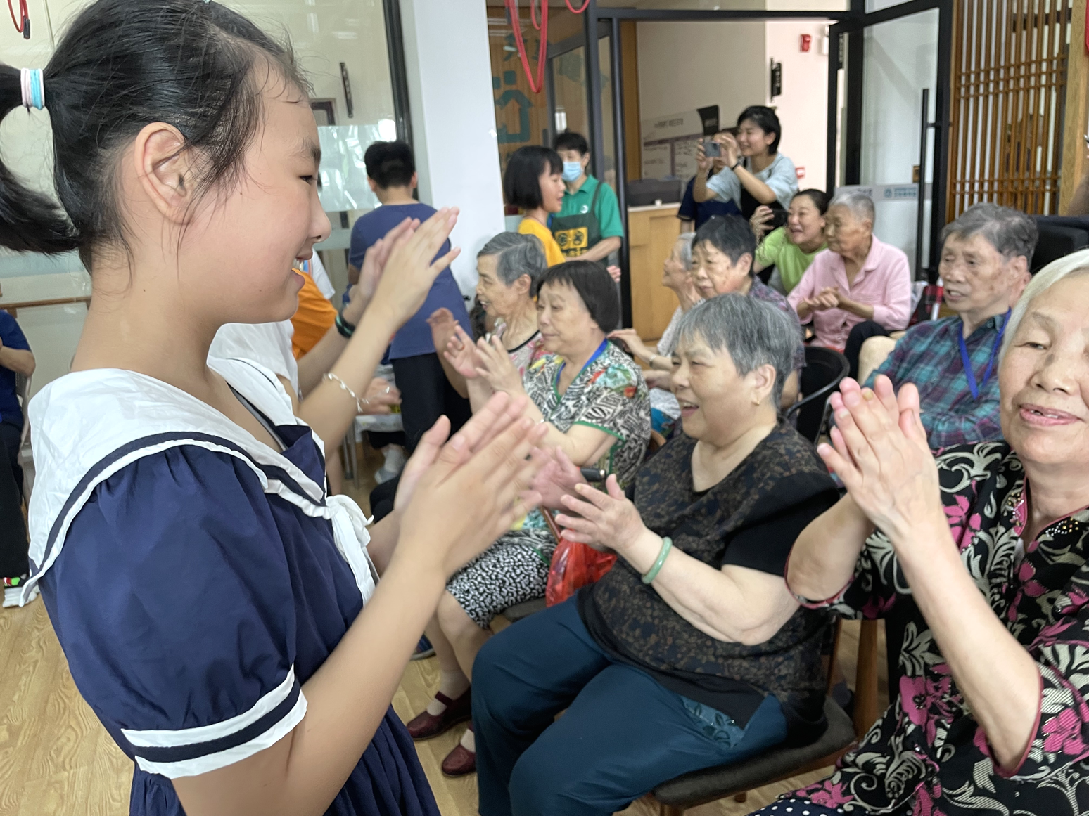 孩子們通過陪伴、表演、游戲互動、集體慶生等豐富多彩有趣的互動,以及和爺爺奶奶之間的情感交流,使長者老有所樂,當看到一張張青春朝氣的臉龐站在舞臺中,爺爺奶奶也會為他們精彩的表演、用心的表達報以熱烈的掌聲鼓勵。