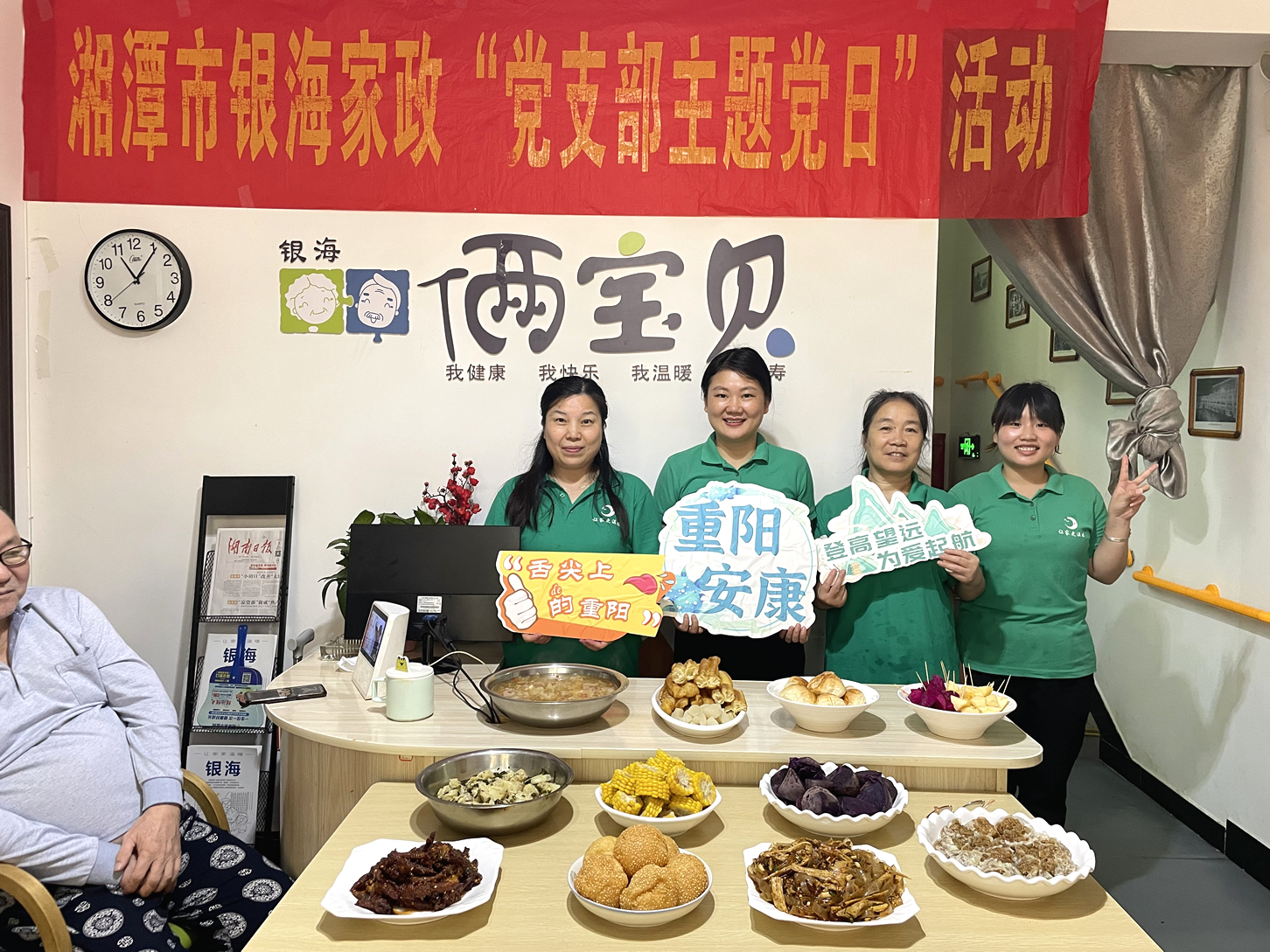 金秋送爽,丹桂飄香。一年一度的國慶、重陽一不小心撞了個滿懷!銀海倆寶貝為豐富入住長者的精神文化生活,特在近日舉辦了為善養(yǎng)老幸福銀行換購活動和舌尖上的重陽美食園游會活動。