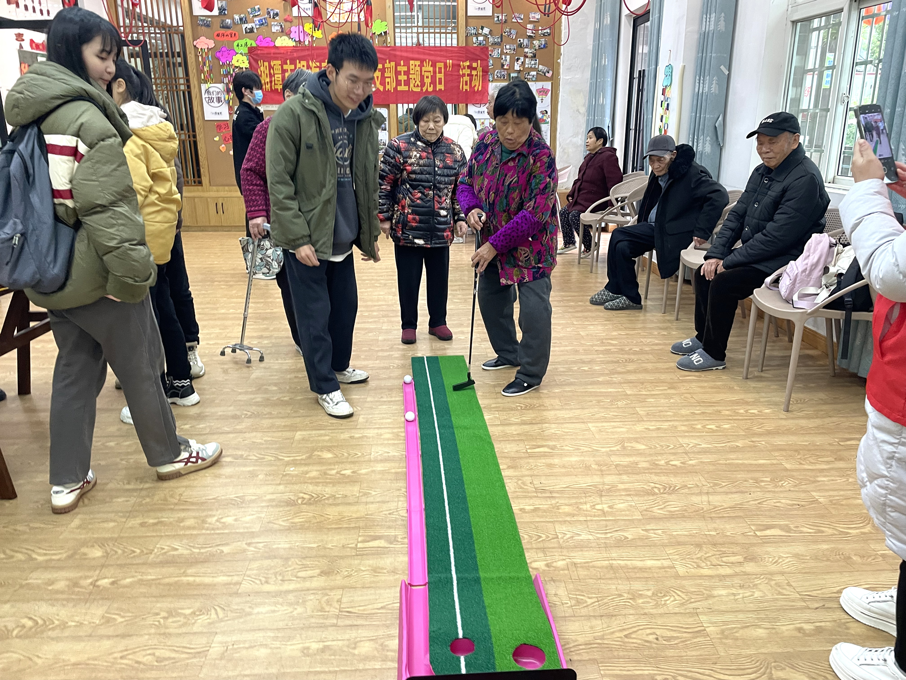 在志愿者們的陪伴下,在大家的一聲聲吶喊鼓舞中,打保齡球的爺爺們逐漸忘卻了自我,打高爾夫球的奶奶們的體驗(yàn)到了進(jìn)球的快樂(lè),就連娃娃機(jī)也被我們搬到了現(xiàn)場(chǎng),志愿者們一步步教老人如何操控娃娃機(jī),體驗(yàn)?zāi)贻p人的快樂(lè)生活。