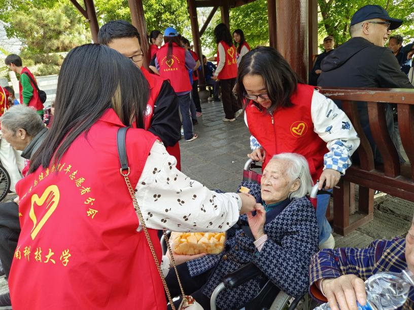 于是,倆寶貝的爺爺奶奶們說(shuō)走就走,與湖南科技大學(xué)生命科學(xué)與健康學(xué)院青年志愿者分會(huì)的23名大學(xué)生志愿者們來(lái)了一場(chǎng)浪漫的約會(huì)。