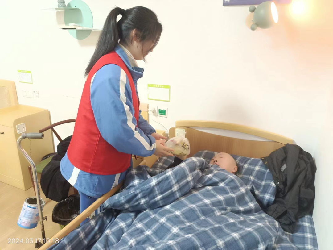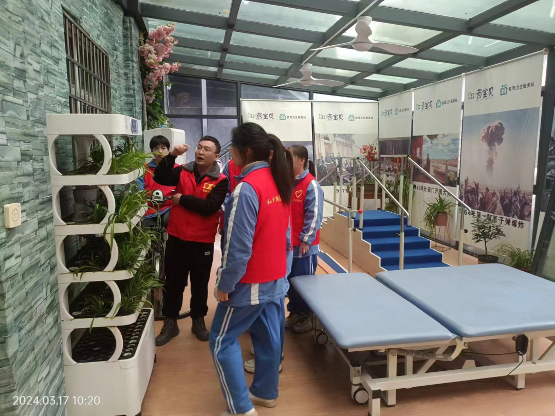 接下來同學們跟隨窯灣照護中心“知心大姐姐”偉偉照護長的腳步參觀并逐一慰問了各樓層的爺爺奶奶,孩子們對照護中心的房間環(huán)境及各種完善設施稱贊不已。同學們在參觀陽光房里各種健康設施尤其是自動種菜機時,尤為興致高昂。